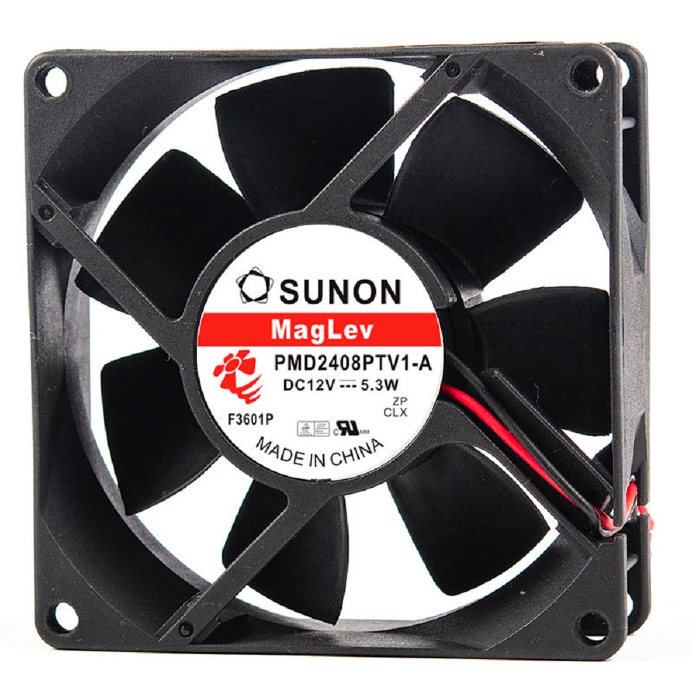 Manufacturer: Sunon Model: PMD2408PTB1-A Dimensions: 80mm x 80mm x 25mm (8025) Rated Voltage: 24 VDC Power Consumption: 4.8 Watts - 5.0 Watts (varies slightly by batch) Operating Voltage Range: 10 - 27.6 VDC Bearing Type: Precision Ball Bearing (2-Ball) Speed: Approx. 4000 RPM (approximate based on the P/N structure, with variations noted in different listings) Airflow: High Airflow capability designed for cooling. Connection: Available in 2-wire or 3-wire configurations Expected Lifespan: ~50,000 hours (ball bearing) Operating Temp: -10 to +70°C (some models specify up to 105°C